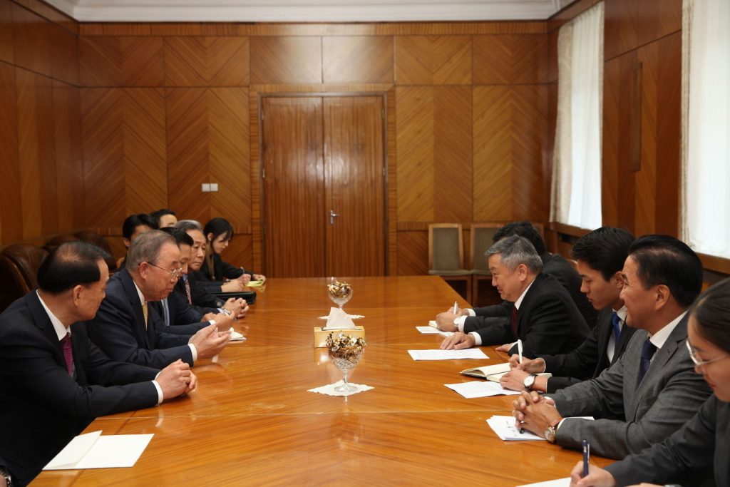 Монгол Улсад зохион байгуулагдаж буй “Азийн төлөөх Боао форум”-ын Улаанбаатарын Бага хуралд оролцохоор хүрэлцэн ирсэн форумын дарга, НҮБ-ын Ерөнхий нарийн бичгийн дарга асан Бан Ги Мүн тэргүүтэй төлөөлөгчдийг Монгол Улсын Ерөнхийлөгчийн Тамгын газрын дарга З.Энхболд өчигдөр хүлээн авч уулзлаа.