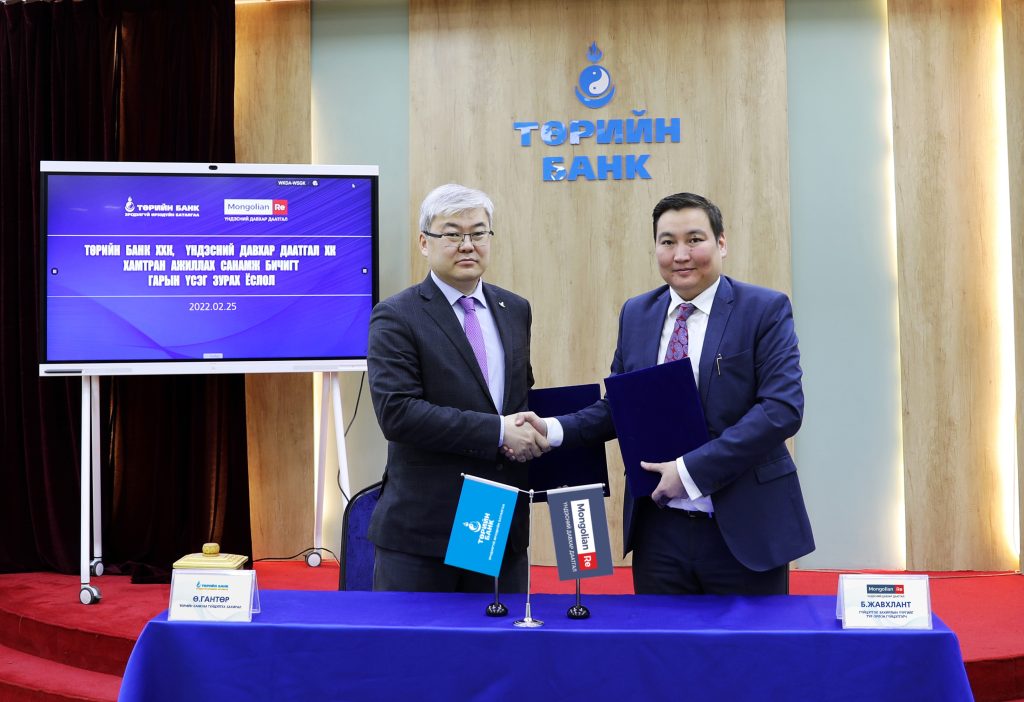 Дээрх зорилтын хүрээнд Төрийн банк, “Үндэсний давхар даатгал” ХК-тай хамтран ажиллах санамж бичгийг үзэглэлээ.