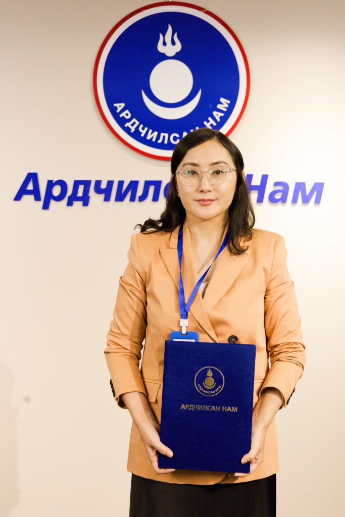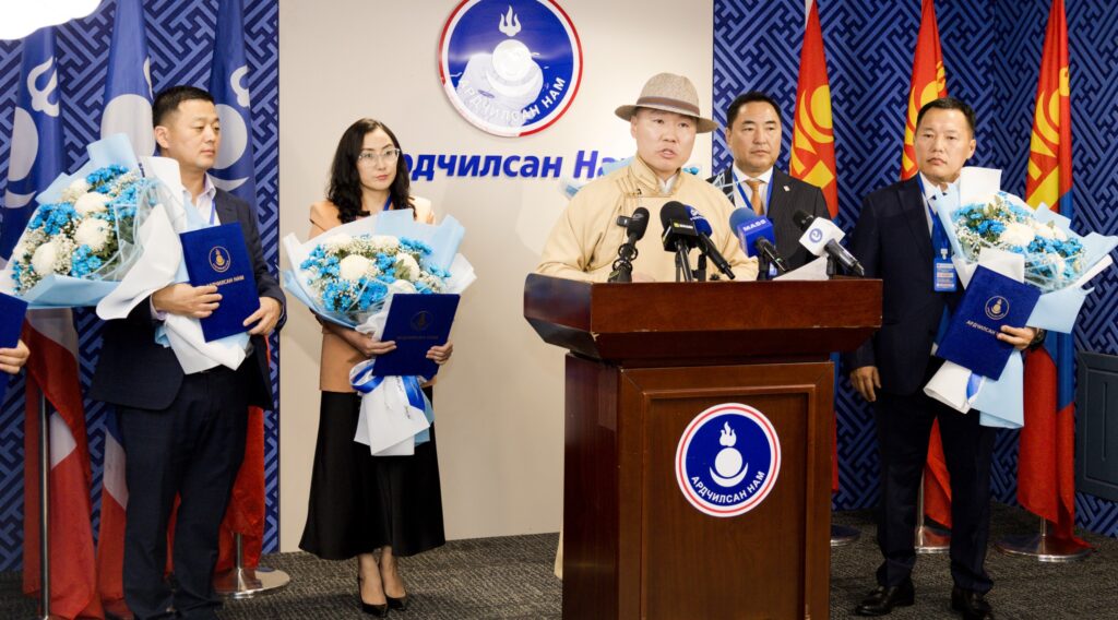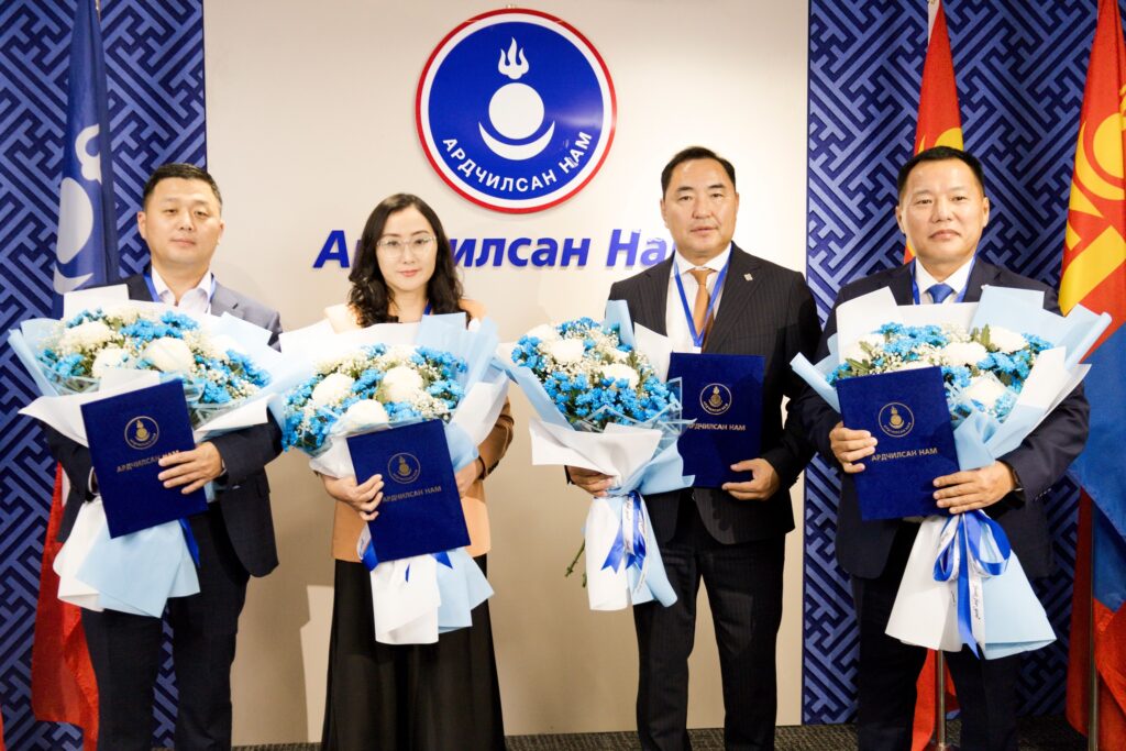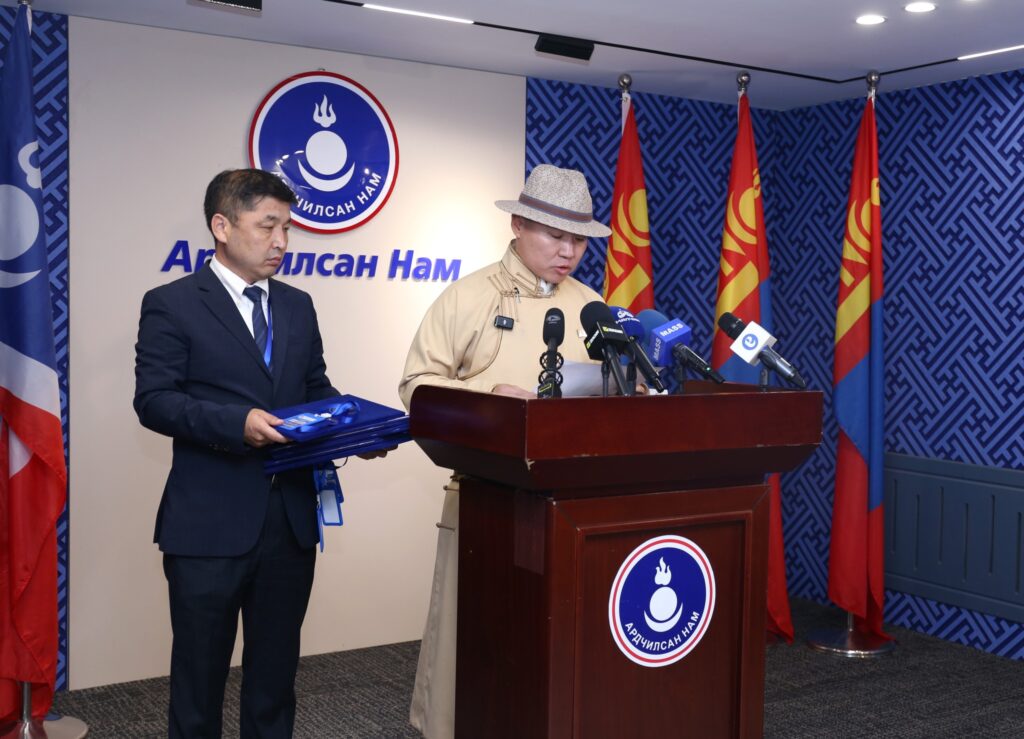 Ардчилсан намын дотоод сонгуулийн хорооны тогтоолыг танилцуулж, намын даргад нэр дэвшигчдэд үнэмлэх гардууллаа.